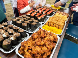 作られたおにぎりとおかずでお昼ご飯をいただきました!