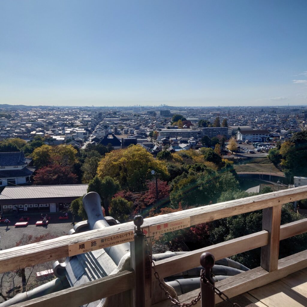 快晴にも恵まれ横を流れる木曽川や目下の城下町、遠く名古屋のビル群まで見渡せる360度の大パノラマの景色は本当に綺麗でした。犬山城の当主の方たちはこうやって目の前に広がる景色を同じように眺めていたのかと思うと少し歴史を感じました。