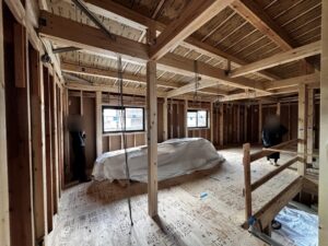 実は、柱が立ち上がり、断熱材を入れる前のこの時期が、