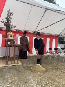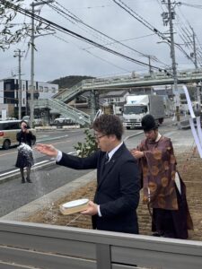 四方祓いは社長が。新たなモデルハウス建築に向けて気が引き締まりますね!