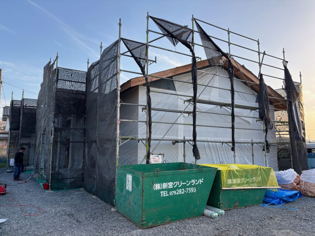 外壁をシートで覆うことで